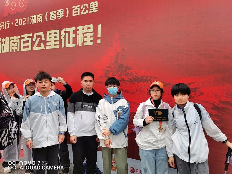 活动动于4月17日开始,中途的准备就一笔略过,唯一着重要说的是活动前夜,百公里活动群发乘车去起点路线,当时我们就在宿舍里炸开了锅,五点半就不提了,可上车点太远了,想聊天时群里禁言了,更气愤了,纷纷抱怨不参加了:发生了很多有趣的事,李同学又来问情况,劝我们去,拉着走,来来往在好不热闹。空气中充满了快乐的气息,一直持续两个半钟头,最后只有室友J一个人了,因为李同学决定去,我因为一两件不足为外人道的趣事鼓舞安抚了我,又临时决定去了,又要收拾东西忙别的烦心事直到凌晨一点才沉沉睡下。凌晨四点20起床,35出宿舍,途中等女生4点55出校门,出门碰巧遇到送客的出租车,上车18分钟然后转早已等候在此的客车,睡了一小时多一点大概6点40到长沙洋湖水街南广场,人很多,飘扬旋帜也很多,宛如一片不断变幻的花海,来的时候正举行开幕式,先领取物资,起点签到,托运行李,逛活动展台,打量着这富有看春与活力的大舞台,最让我个象深刻的是寄信给五年后的自己,我还挺好奇的,对未来的我充满信心,但也有不少迷茫,期待五年后的自己,一开始很有活力,拍了很多照片,错过了一部分,但身着军训服的小哥哥还是真的惊艳到我了,牛人方阵真牛,还有各位代表队的护旗手很威风,他们的宣誓,他们的表演都让我太呼过瘾,还有领导的讲话最有记忆的是有力的百公里毅行正式开始。