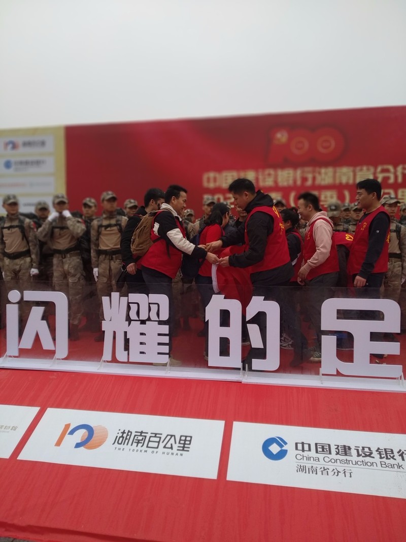 大约10点20分,我来到巴澳州广场,有补水点还有些小礼品可以领,在入口有两个供人专影的框牌,一是传传承红色基因,弘扬禁毒知识,一个是2021年冲鸭,我的合影很阳光灿烂开心了,现在很开心。休整十分钟继续上路距离第二签沪昆高铁桥下有11公里,有路餐,人开始有点疲芳了买了根20元的杆,沿着沿一直走 在郊区的路上没什么信号,队伍被拉得长长的。一下就卸力了, 不人在路边生下休息的我踏着爱慢他固定的步向前,保持微笑,因为你是花钱事是路的,经过一中交一航局旁边还有一个人民港机台,很新颖,一路踽踽独行,走过石板路,踏上公路,越过塑胶红道,一边的建筑物变成绿化带,又变成了浩浩湘江,走在青草地上,人得到获得放松,很多人选择在这里休息,吃东西补充体力,看江景.我又记录下了许多最美瞬间就在鹅洲大桥。我又将标语拍下来想会不会有集相片兑换礼包的事,我追上了一位护旗手——全百里第八方阵的旗,经过老兵蜂场,看着前面沿着河边走 草地的人,我看着面前空旷稀疏的红砖铺人行道,我突然萌生了超越他们的想法, 记得好像一则故事,一位日本运动员将长跑路程分作许多小节,每次都向前面的节点拼尽全力冲刺,可以激发出人的最大潜能。我向着视线里最远的人小跑追上了就慢走休息一下,稍稍恢复过来就继续冲锋,就这样我至少超越了200人,在第二签到点追上了我的三位同学但是两位李同学在他们三到这里休息时,就已经休息好久又走了,总之第1天共走了46公里,我们4个大约晚上8点到了湘潭体育中心,两位李同学比我们早到了两个多小时,太有干劲了,一路小跑加冲刺,服了,怪不得要让我们陪她一起来,红花配绿叶,没有我们的衬托,才能体现出她的牛逼,其实就是我们太弱了。我也走完了就很厉害了,对吧?