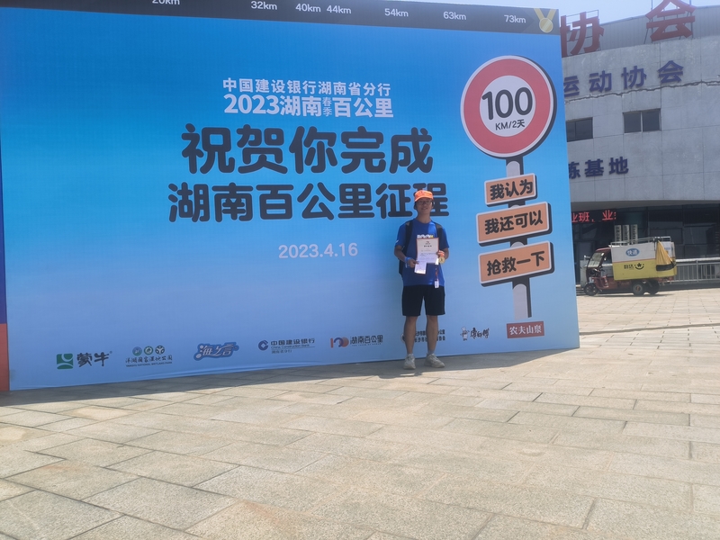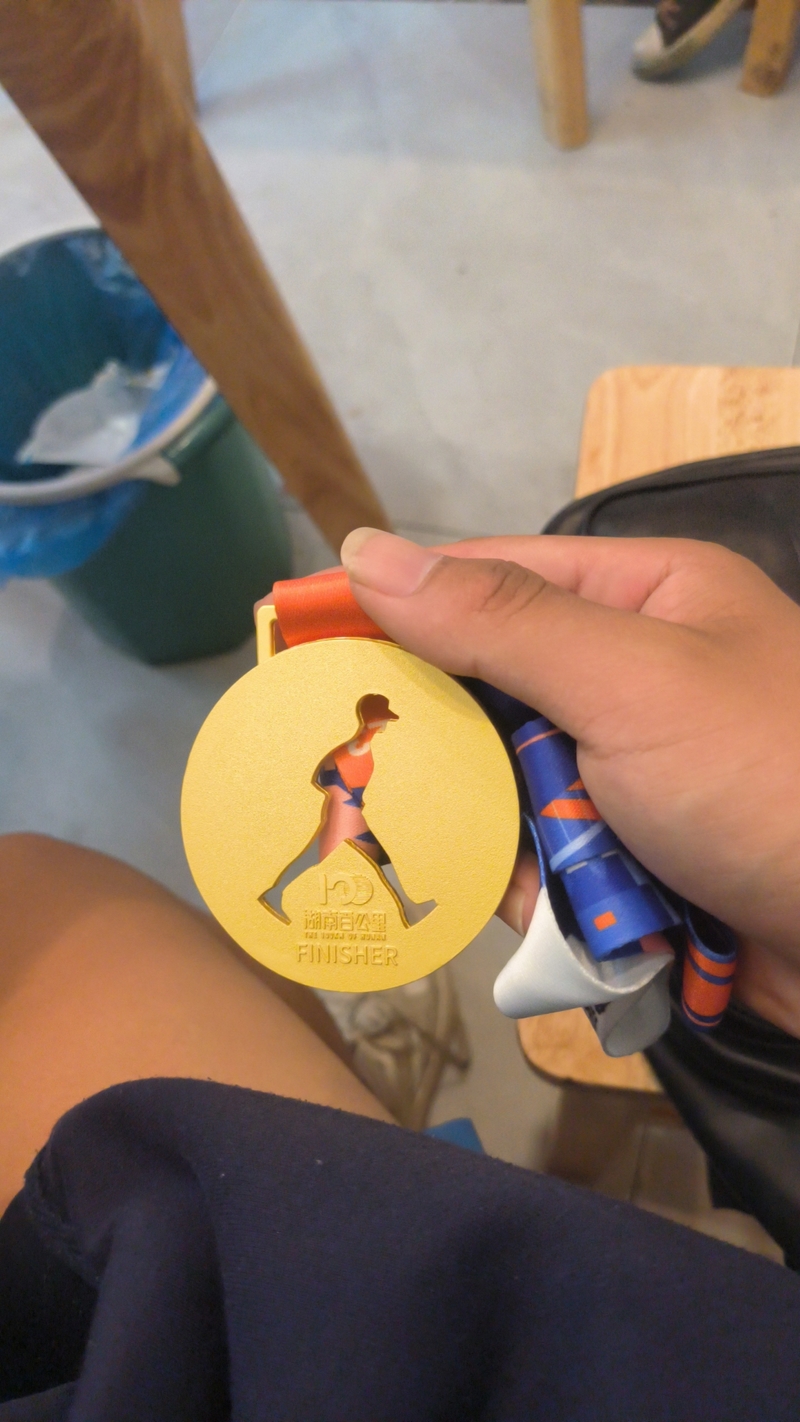 踏这歌曲的律动,拖着疲惫的身躯,我冲到了终点,没有想象中的欢欣鼓舞,只是找了个地方开始休息,就这样,领了证书奖牌过后,两天一夜的百里毅行结束了。之后,那个朋友也到达了终点,我俩明显熟络了很多,帮他拍了照片,也加了联系方式,我想,人与人之间的联系,就是在这样的痛苦与温情之中建立的。感谢百里之行。