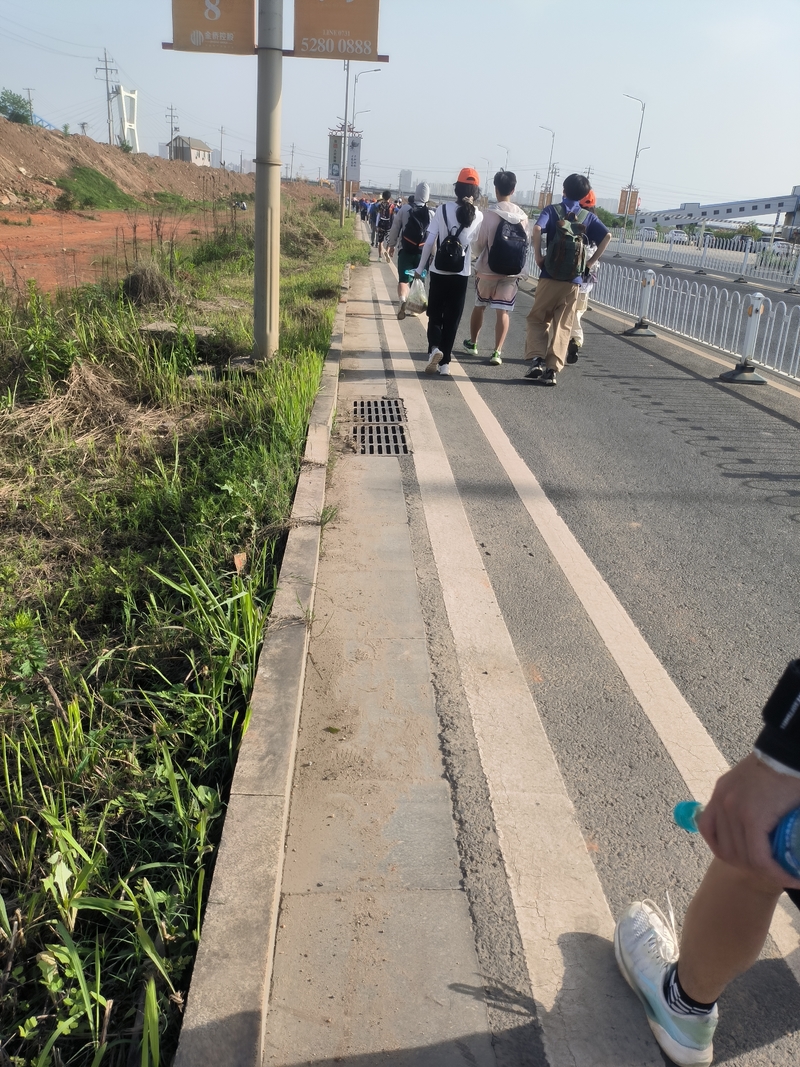 在路上也看到了许多车子,汽车,共享单车,摩托车,甚至三轮车都有,像是约好了一样,经过我们这些行者的时候,停下车,询问要不要坐车前往终点。或是少年郎的骄傲,或是不愿承受他人异样的眼光,又或者是囊中羞涩,总之,很少有人选择走这条捷径。