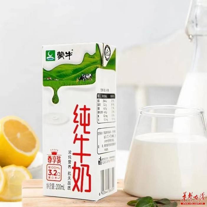 以及由湖南蒙牛乳业销售有限公司提供的蒙牛纯牛奶一瓶,含有丰富的蛋白质、脂肪、维生素和矿物质等营养物质,给你天然的营养补充。
